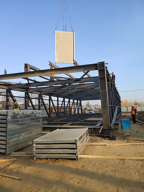 鋼骨架輕型板適用于輸煤棧橋、公共民用等建筑圍護(hù)屋面、樓面、墻面.鋼骨架輕型板由輕型鋼骨架、冷拔鋼絲網(wǎng)、改性水泥珍珠巖復(fù)合芯材(專(zhuān)有技術(shù))、復(fù)合抗?jié)B耐磨涂層(專(zhuān)有技術(shù))組成.鋼骨架輕型板集輕質(zhì)、承重、節(jié)能、防火、隔聲、泄爆、抗震等功能于一體,既保持了傳統(tǒng)鋼筋混凝土構(gòu)件安全度高、使用壽命長(zhǎng)的優(yōu)點(diǎn),又滿足了現(xiàn)代建筑對(duì)輕質(zhì)、節(jié)能、環(huán)保的要求。